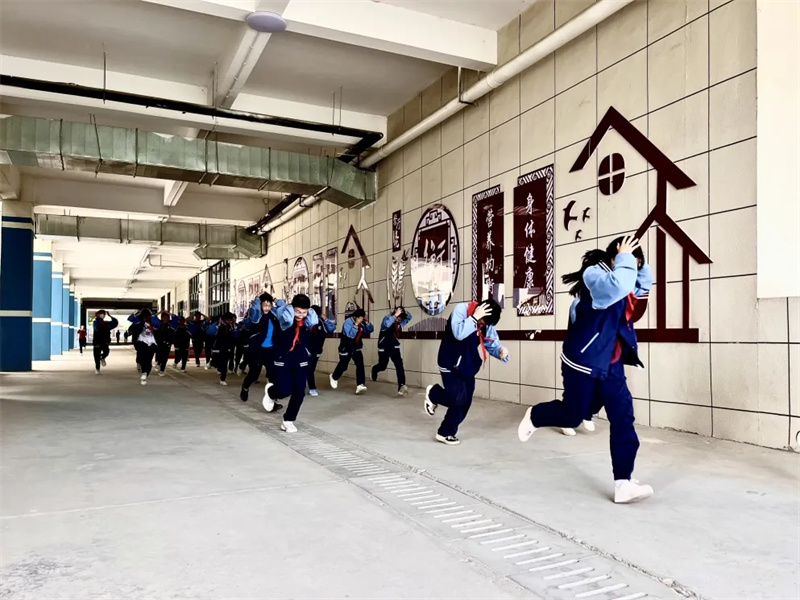 演练过程严肃紧张,有条不紊,无一学生疏漏,未出现碰撞、摔倒和踩踏事件,取得良好效果。