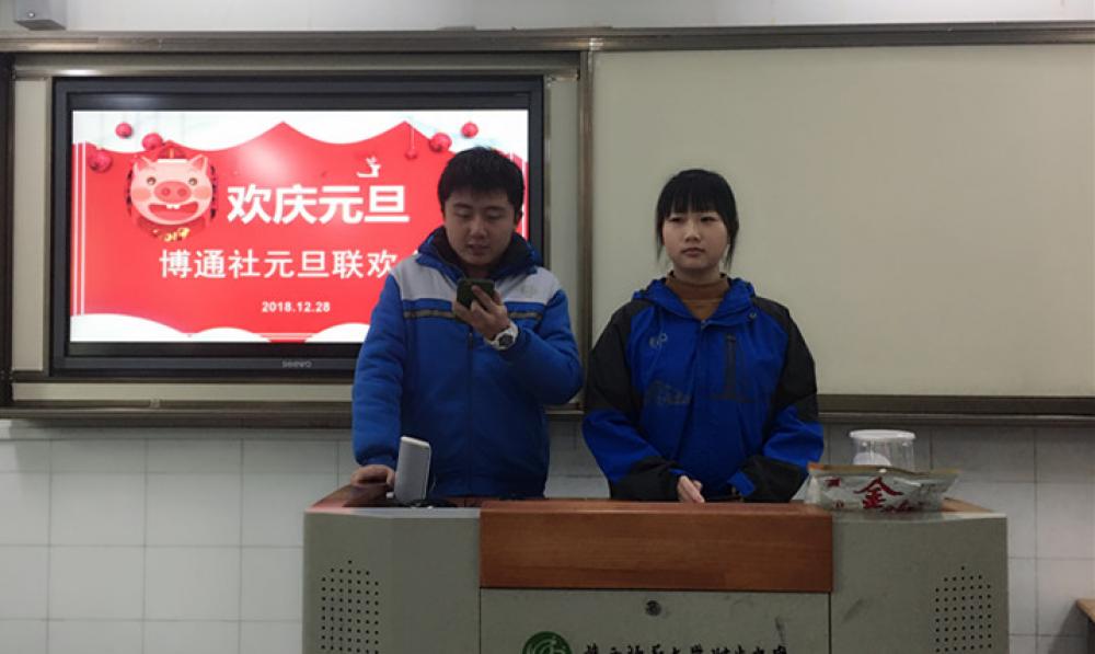 2018年12月28日中午,博通社举办了欢庆元旦的小联欢活动,同学们表演、参与的积极性高涨。经过前期的精心准备,节目类型丰富多样,有歌曲类、戏曲类、相声类、游戏类、礼仪类、乐器类等等。...