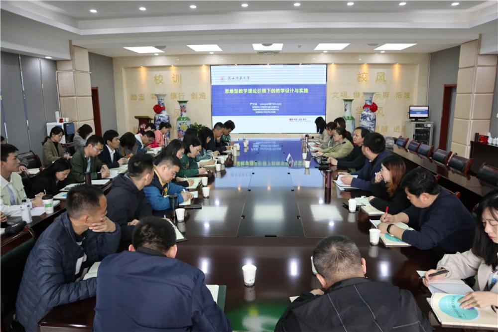 4月28日上午,我校思维型教学研修共同体进行了第三次研修活动。本次研修活动的内容为《思维型教学理论引领下的教学设计与实施》专题报告,陕西师范大学严文法教授应邀作报告。我校思维型教学研修共同体全体成员参加研修,研修活动由教研室主任董翼主持。...