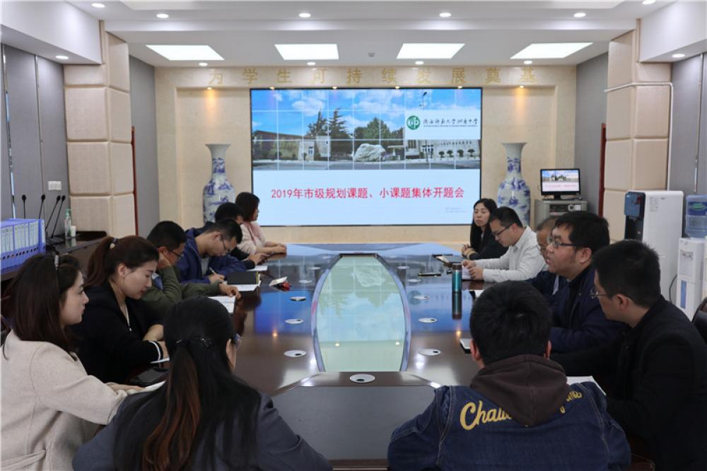10月22日下午,我校2019年市级规划课题、小课题集体开题会在崇是楼小会议室召开。西安市雁塔区教师进修学校教研部主任刘旭亮,我校教研室主任董翼,教务处副主任陈德裕,相关课题主持人和成员代表参加了本次开题会。...