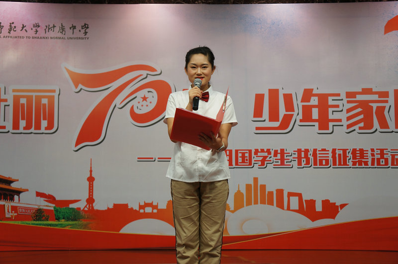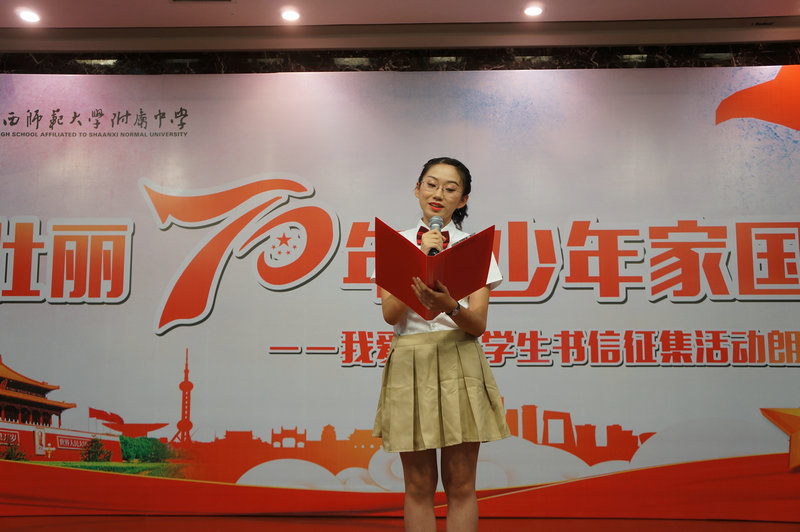 为培养青少年的爱国意识和家国情怀,传承中华民族优秀传统文化,引导青少年了解家史、党史、国史,大力弘扬以爱国主义为核心的伟大民族精神,值建国70周年之际,我校政教处于2019年9月11日下午,在综合楼报告厅举行《壮丽70年 少年家国信》——我爱祖国学生书信征集活动朗诵大会,我校冯军校长,副校长刘晓晴、张帆,沣西第二学校执行校长权小红,西安日报社副总编程建设,西安晚报阳光报总编万波,副总编韩文韬,陕西省朗诵协会副会长晓河,陕西广播电视台影视频道制片人许超,阳光网、魅西安,西安晚报等媒体代表,我校董翼主任、王建军副主任、刘建玲副主任、鲍青青副主任、符洁副主任、语文教研组组长万琼老师及初二、高二年级全体语文老师、高二年级全体班主任和学生参加了此次活动。