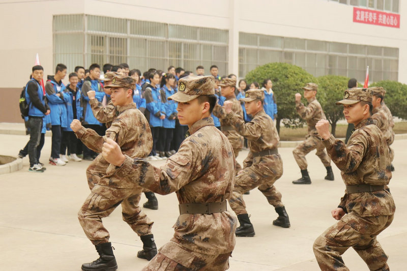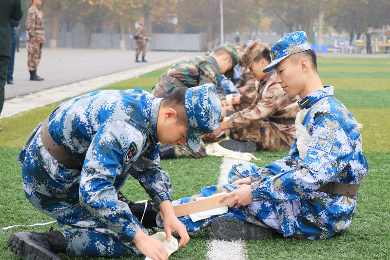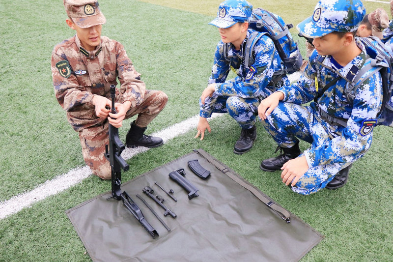 随后,同学们分组进行了观摩互动体验。各个班级按照不同的顺序依次参观了棍术表演、战伤救护、叠被子、打背包、军体拳以及军中内务设置,并进行了一次难忘的自动步枪操作。通过这些项目,同学们对军队生活有了更深刻的认识,深入了解了半公开的军营,对于解放军的认知,也从“耳闻”变成了“亲眼一见”,并在学习实践当中,获得了不一样的体验。而解放军战士们,也借此机会向我们展示了一个自信军队的形象,加强了和我们的联系,增进了我们的感情,打开了社会了解军队的窗口,系上了社会与军队深入交流的纽带。
