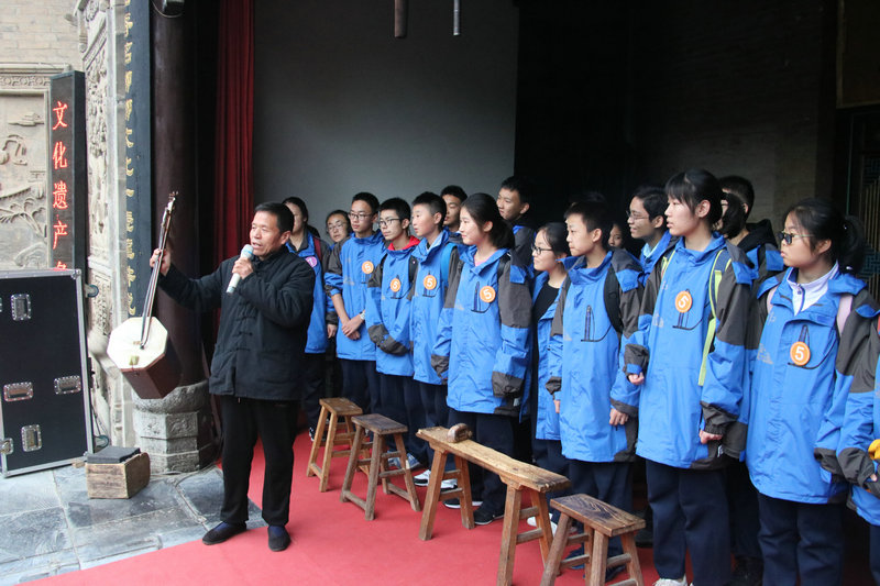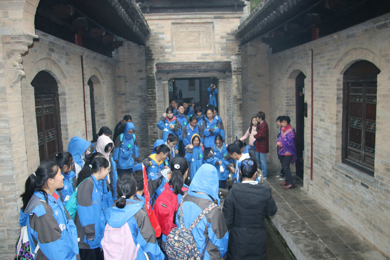 该博物院是由王勇超先生历经30余年,耗资5.7亿建成,旨在让人们了解关中地区的一些建筑及习俗。入口处便是清末“地通乾元”门楼,寓意此地通天,这里是美好的地方。进入博物院,拴马桩展馆展出了一百余件形象各异的拴马桩,以胡人,狮子,猴子,钱币状居多。民居一条街坐落着九处明清时期的古宅和梨园。在梨园内,同学们欣赏与学习了国家非物质文化遗产,号称“东方最古老的摇滚”——华阴老腔,那朴质的唱腔与演员们饱满的热情感染了每一位同学。同学们还纷纷登台学习如何用板凳给老腔伴奏,个个有模有样。