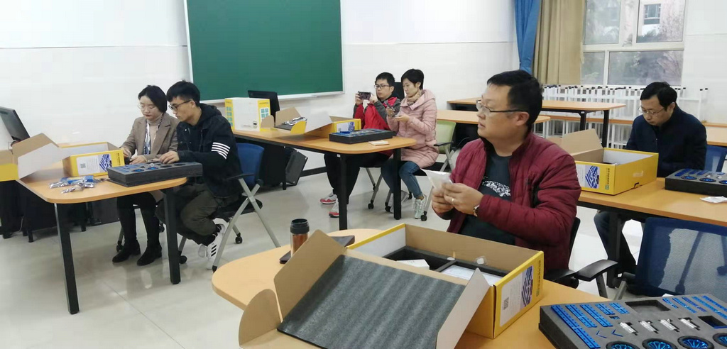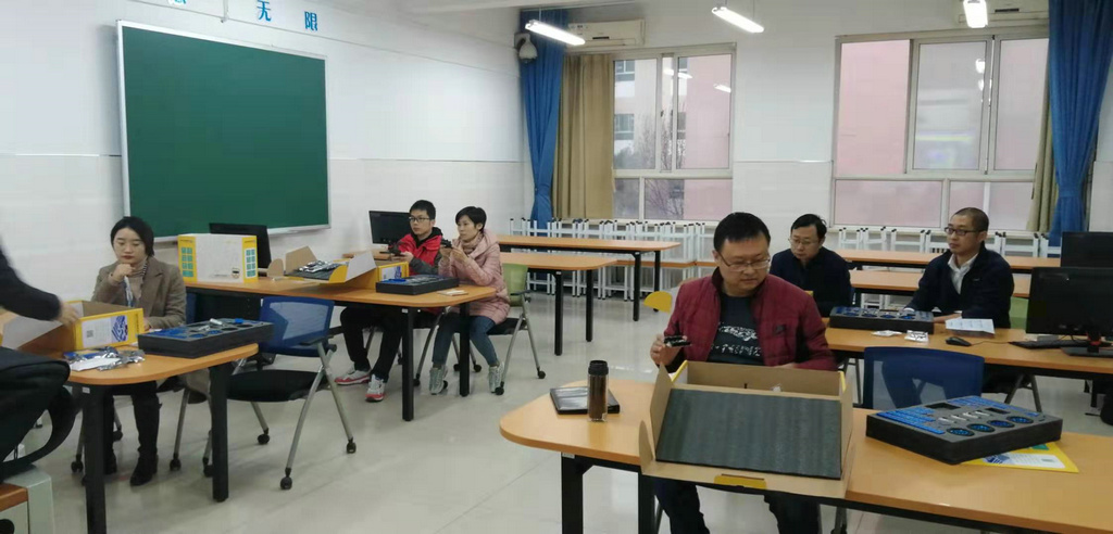 在学校领导的支持下,附中机器人创客教室在本学期建设完成,附中人工智能、创客教育、机器人教育的硬件办学条件有了很大的提高。为提高我校科技创新能力,附中音美信教研组马立组长带领全体信息技术学科教师在新建的机器人创客教室展开教研活动,进行了集中学习,在学习教研活动中,相关产品的厂商培训师带领大家熟悉设备、了解仪器特性、掌握配置方法,将厂商研发的设备、仪器的特征、优点逐一向老师们介绍,全体信息技术教师进行了详细的学习及细致的探讨,整个氛围愉快而又有序。