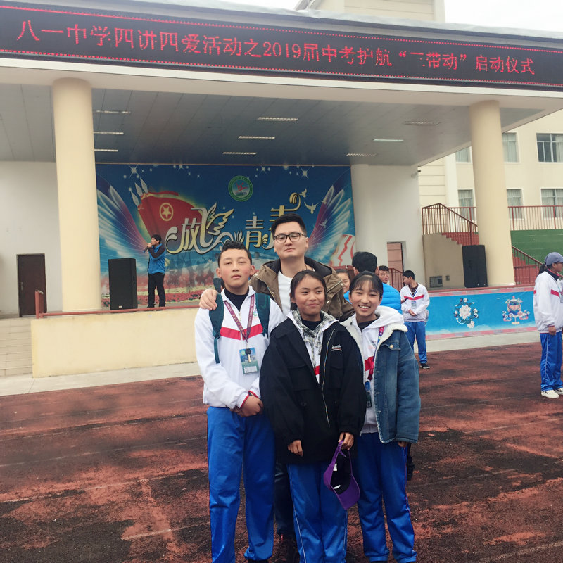 2016年7月31日他告别了父母、未婚妻,离开了西安,前往西藏林芝。临别时,心中有着万分的眷恋与不舍。作为家中的独子,他深深地知道,他的离开必将给家庭带来生活上的压力和精神上的空缺。可又想到这是组织的召唤,藏区还有许多需要帮助的学生,他没有犹豫,没有退缩,毅然决然的踏上了征程,他要让自己成为全家的骄傲和自豪。