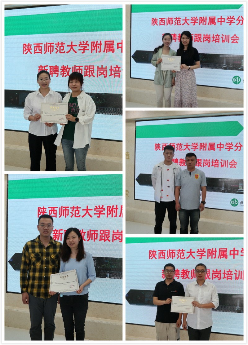 会议在振奋热情的氛围中结束。全体与会人员合影留念,新聘教师和各自导师也分别合影,此次跟岗培训工作正式拉开帷幕。