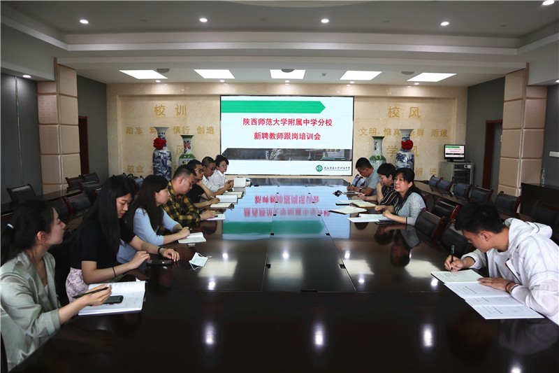 5月25日上午,我校教务处在崇是楼大会议室召开了陕西师大附中分校新聘教师跟岗培训会。高丽文副校长、张元芳主任、五位新聘教师刘寿珍、郑倩钰、袁艺、党立敏、刘宝瑞和相应跟岗培训导师参加了会议。会议由张元芳主任主持。