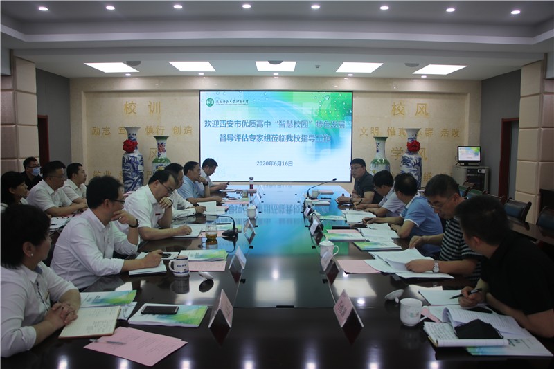 6月16日上午,西安市雁塔区普通高中特色学校创建评估专家组一行5人在组长徐世峰带领下对我校特色学校创建进行评估检查。专家组首先在我校崇是楼会议室举行工作会议,听取我校特色校园建设情况的汇报,并就评估检查工作进行安排部署。我校校长冯军,党委书记陈勇刚,副校长沙瑞龙、张帆、郭胜、高丽文及全体中层领导和部分教工参加了会议。