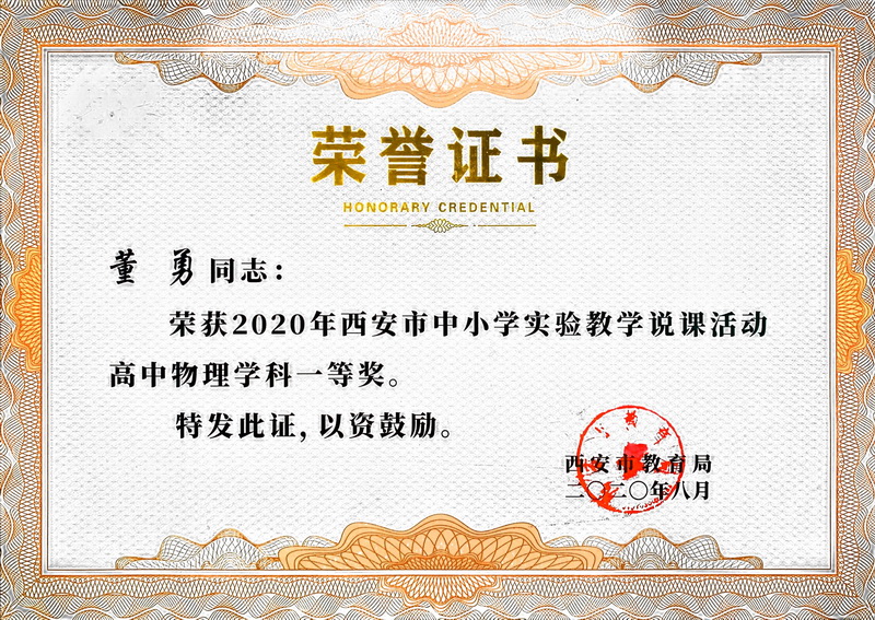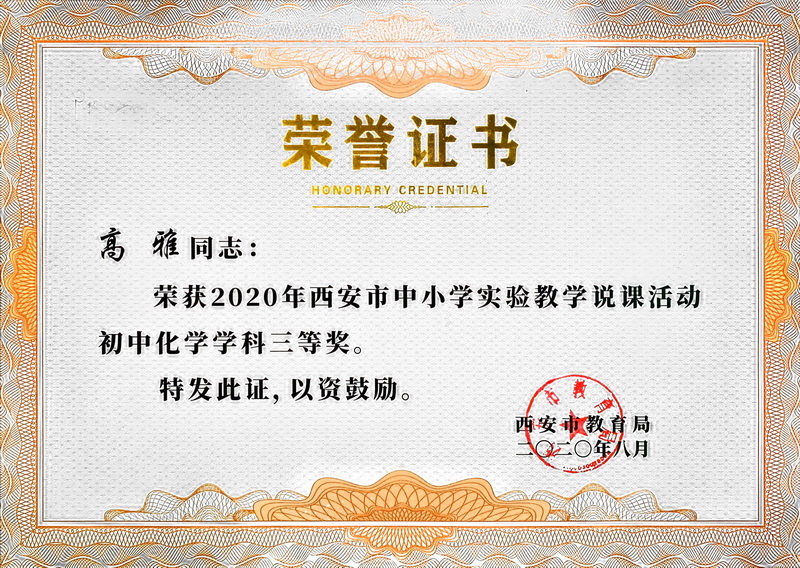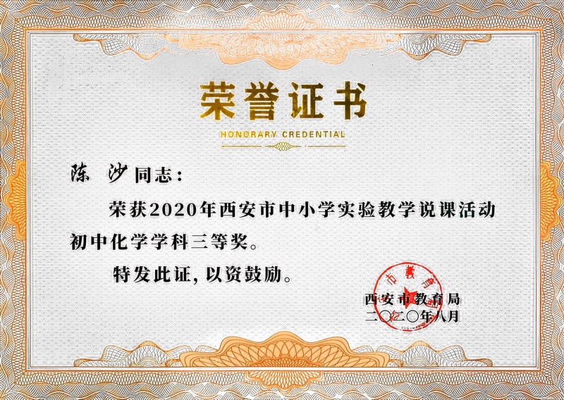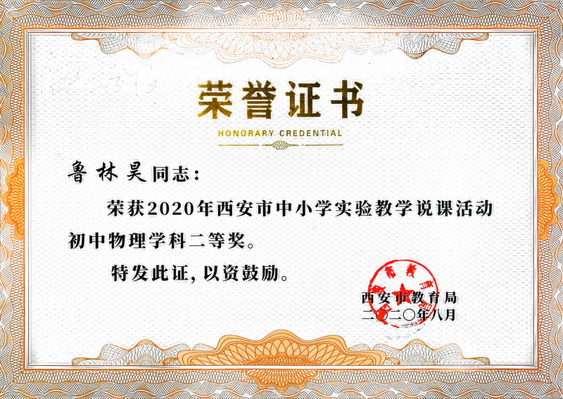 我校9位教师在2020年西安市中小学实验教学说课活动中表现突出,其中董勇、孔令操、刘杨3位老师获得一等奖;张剑楠、鲁林昊、王鹏3位老师获得二等奖;刘静丽、高雅、陈沙3位老师获得三等奖。希望各位教师珍惜荣誉,继续学习,不断成长。