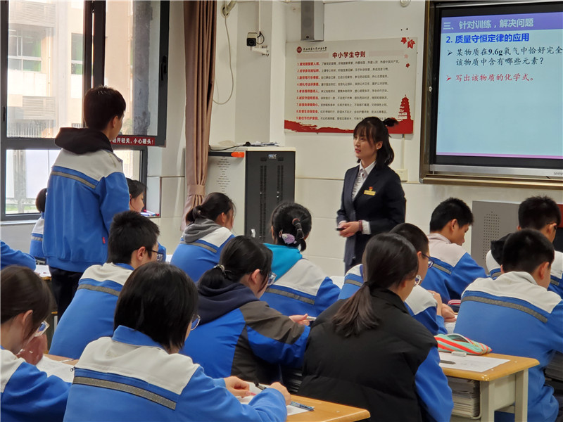 为了充分发挥党员教师引领示范作用,展示党员风采,努力提高教师课堂教学水平,2020年11月16日下午,陕西师大附中化学组党员教师高雅在崇是楼117教室进行了一节初三化学公开课。陕西师大附中第五党支部第一党小组全体成员参与了此次课堂实践交流活动,陕西师大附中校长,党委副书记冯军也到现场听取了高雅老师的公开课。