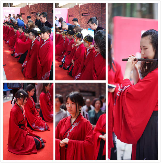 下午3点20分,毕业生身着统一的红色汉服在校园内等候仪式开始,女生端庄优雅,男生风度翩翩。大家纷纷在自己校园内摆放的的录取红榜前与家长老师合影留念。