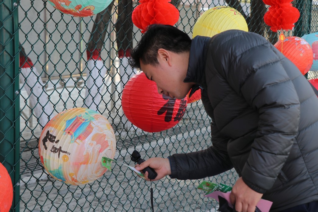 猜灯谜活动同样备受欢迎。篮球场悬挂着各式各样的灯谜,吸引了众多教职工驻足观赏、思考。大家或低头沉思,或相互讨论,猜中谜底后脸上洋溢着满足和喜悦的笑容,既享受到猜谜语带来的欢乐,又能感受传统文化的熏陶。
