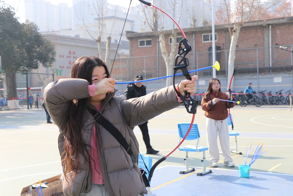 在制作冰糖葫芦体验区,教职工们亲手挑选山楂、串果、裹糖,制作出了一串串晶莹剔透、美味可口的冰糖葫芦。这一传统小吃的制作过程不仅让大家体验到了动手的乐趣,更让大家在品味美食的同时,对传统文化有了更深刻的认识和理解。此外,投壶游戏、传统文化知识竞答、传统射箭(礼射)、非遗手工DIY、抖空竹比赛、蹴鞠比赛以及掷沙包比赛等项目也各具特色,教职工们在参与中感受到了传统文化的多样性和独特韵味。