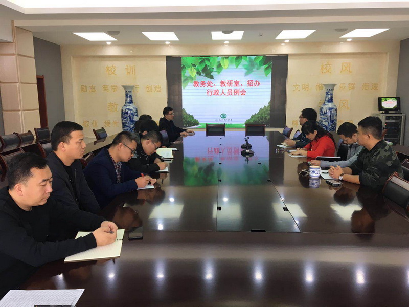 10月11日上午,我校教务处、教研室、招办在崇是楼五层大会议室召开本学期第三次工作例会。会议由张元芳主任主持,教务处、教研室、招办全体工作人员参加了会议。