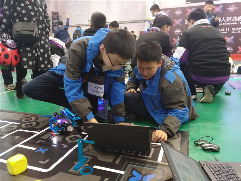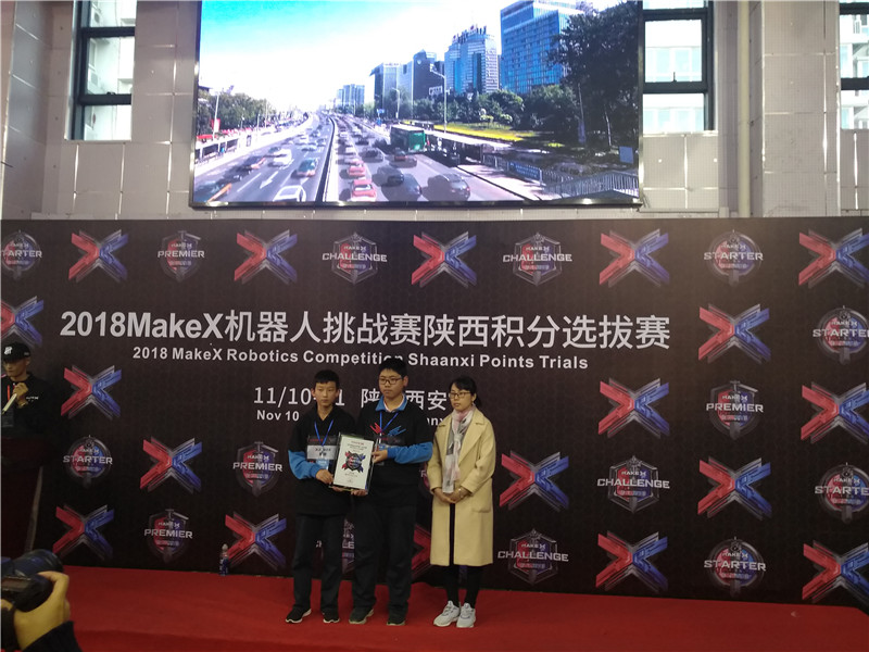 2018年11月10日、11日,2018MakeX机器人挑战赛陕西省积分选拔赛在西安高新第六小学举行,我校乐创机器人社团张嘉豪,张郁桐,李贺涵,黄泽林4人在指导老师李云海的带领下参加了此次比赛。