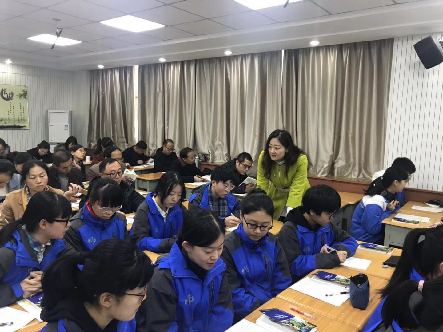 为落实全民阅读立法精神,进一步提升学生核心素养,11月16日下午,“优化课堂教学提升阅读素养”全国基础英语阅读教学研讨会---江苏陕西两省名师同课异构交流会在陕西师范大学附属中学报告厅及理科录课教室举行,上海外语教育出版社基础教育部副编审黄新炎、江苏省海门市中小学教师研修中心(小学英语)教研员姚少华、陕西省英语学科教研员张雪莲、陕西师范大学附属中学副校长高丽文、陕西师大附中外语组教研组长雷双娥老师以及江苏和陕西各级英语教研员参加活动。