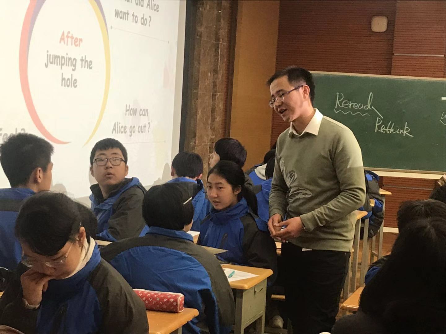 此次课堂观摩教学活动,分为初高中两个分会场,陕西师范大学附属中学英语教师焦洋洲及江苏省南通市施丽老师分别进行初中组观摩课展示,执教的内容为上海外语教育出版社出版的黑布林英语阅读《爱丽丝麽梦游仙境》分级阅读。陕西师大附中安文娟老师和江苏省西亭高级中学英语学科组长钱海军老师就《了不起的盖茨比》经典阅读呈现了两堂精彩纷呈的阅读课。我校焦洋洲老师此次大胆挑战主题解读阅读的新想法,新教法。采用DRTA阅读方式呈现教学主线。围绕“impossibilities”主题展开。安文娟老师的品读课,让学生在读中学,品中思,引发学生了解,研究,赏析小说主人公的人物性格更重要的是引领学生结合实际生活思考人生,使学生收获颇多。两位老师的展示课收到专家及各地教研员的一致好评,并为在座的老师就如何进行课外阅读教学提供了有价值有意义的思考。