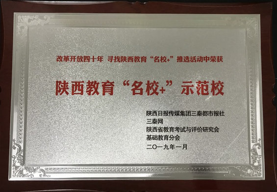 我校荣获陕西“名校+”示范校(中小学)荣誉奖牌