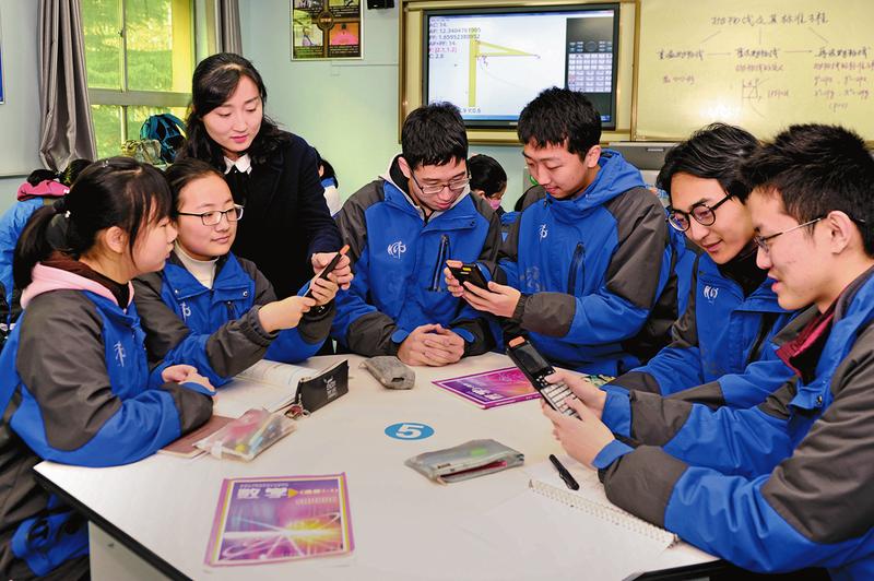 1月8日,陕西师范大学附属中学的老师通过手持计算器、云纸笔将学生现场的课堂数据进行采集并解答。近年来,该校将教育信息化作为发展重点,完善了云纸笔应答器等个性化教学设备,方便老师关注每一个学生的成长。学校通过网络技术组织本校、西安市第四十五中学、西安市临潼区骊山初级中学等相关学校同年级、同学科的教师,实施网络共同教研,促进义务教育均衡发展。