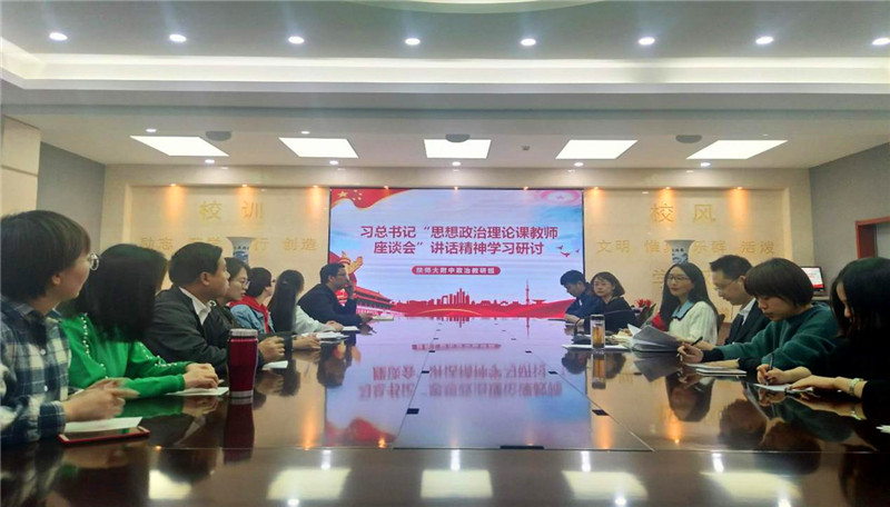 3月27日晚,我校政治教研组在崇是楼五层会议室召开学习研讨会,深入学习领会习近平总书记在学校思想政治理论课教师座谈会上的讲话精神。学校党委陈勇刚书记和全体政治教师参加了学习。