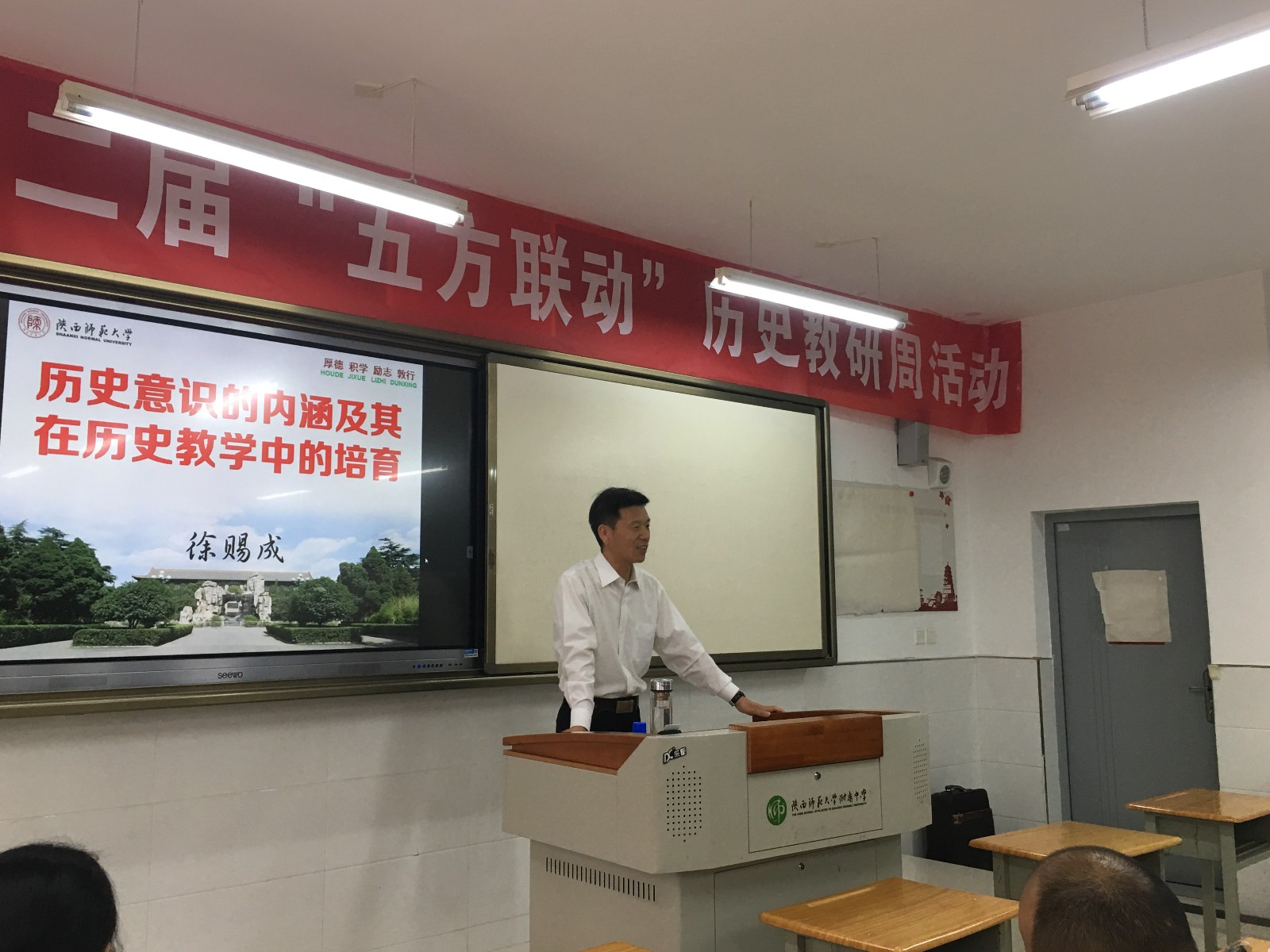 在继前一日曲江一中罗红梅和西安中学郭富斌两位中学名师的报告之后,当日又迎来了陕西师范大学历史文化学院副教授徐赐成和西安八十九中特级教师李树全两位专家教师的精彩讲座。