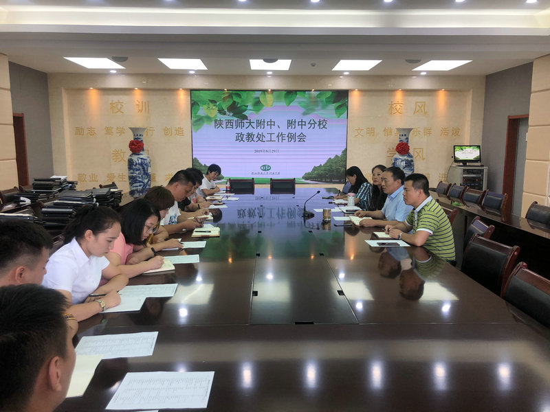 2019年8月29日下午,我校政教处在崇是楼5层会议室召开工作安排会,会议由张帆副校长主持,政教处鲍青青副主任、索海峰副主任、符洁副主任以及全体政教干事参加了此次会议。