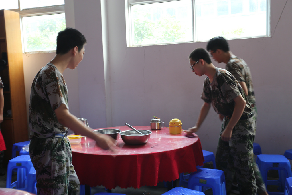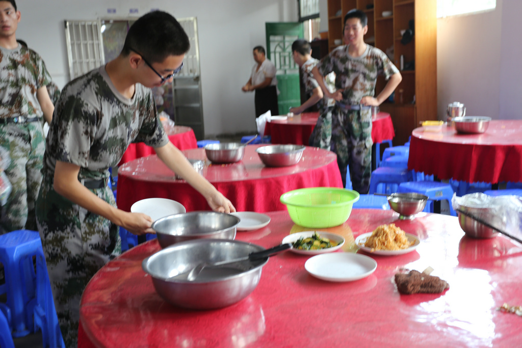 军营清晨准备战饭 值日兵辛勤工作