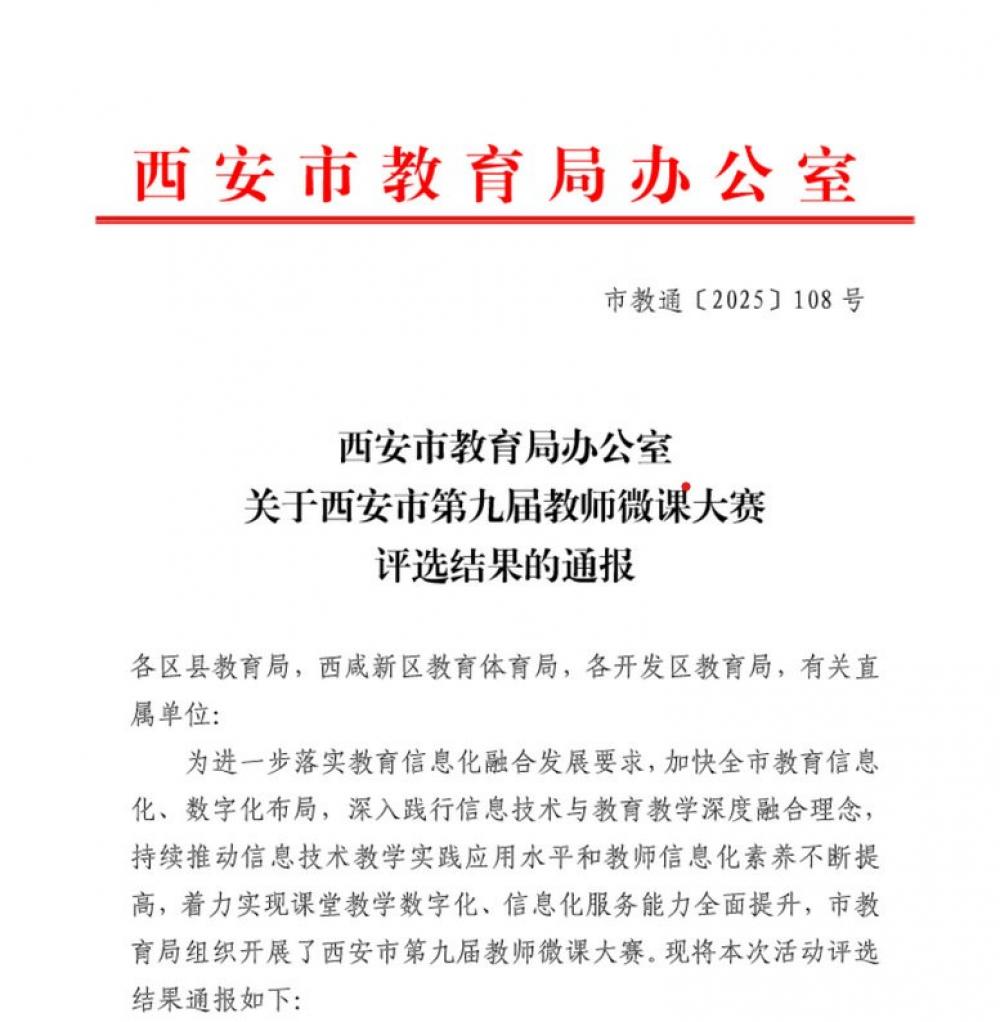 喜报 | 我校多位教师在西安市第九届教师微课大赛评选中荣获佳绩