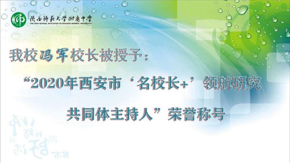 我校校长冯军被授予“2020年西安市‘名校长+’领航研究共同体主持人”称号