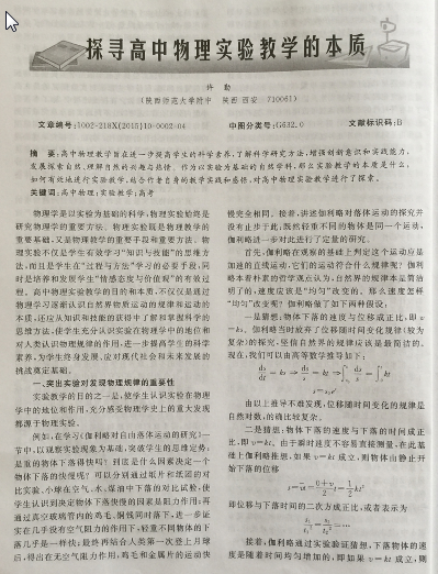 许勤老师发表论文“探寻高中物理实验的本质”